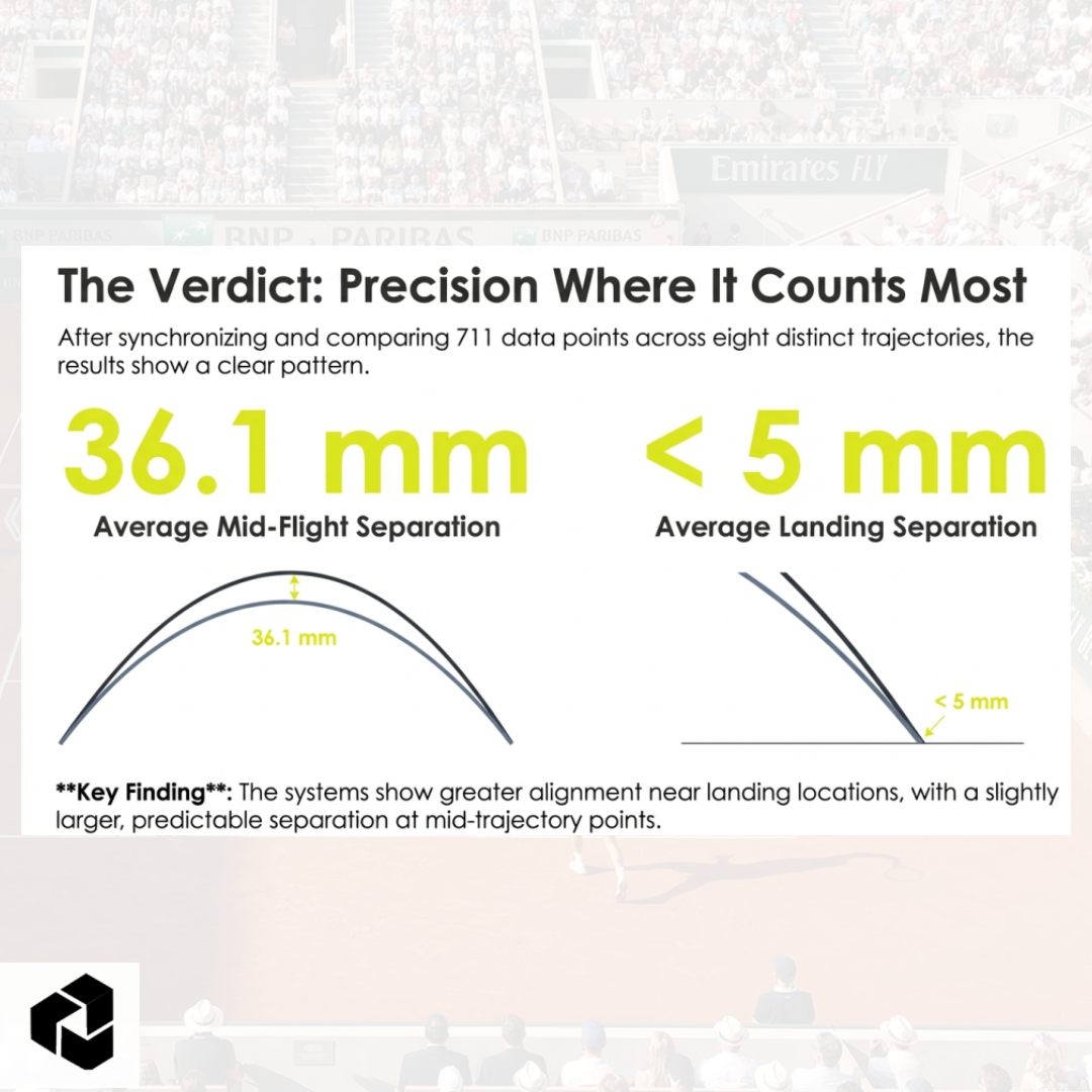 • Precision increased significantly near the landing locations (crucial for line-calling), where the average difference dropped to less than 5 mm.